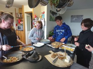 トリシア先生の妹さんの家でピザランチ。手作りピザは最高に美味しいです。
