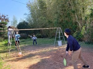 腹ごしらえに バトミントン・トランポリンも楽しみました。