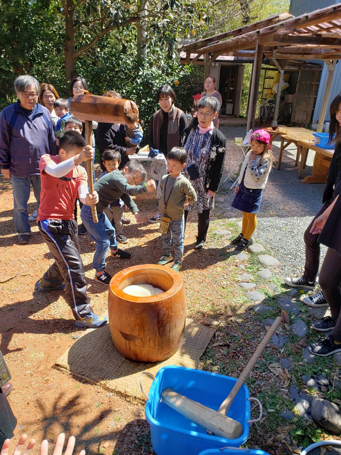 例によって 参加者の皆さんにいっぱいお手伝い頂いて楽しいお餅つき出来ました。